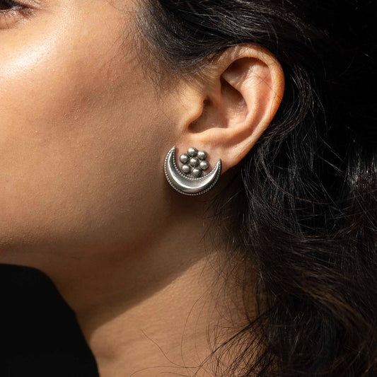 Oxidised Moon Silver Earrings