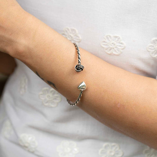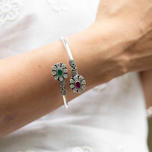 Silver oxidised Flower Cuff