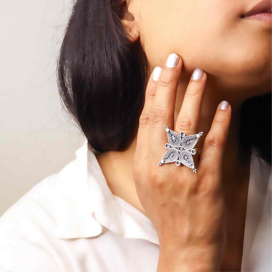 Add drama to your look with oxidised silver jewellery that makes a statement.