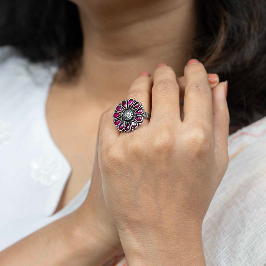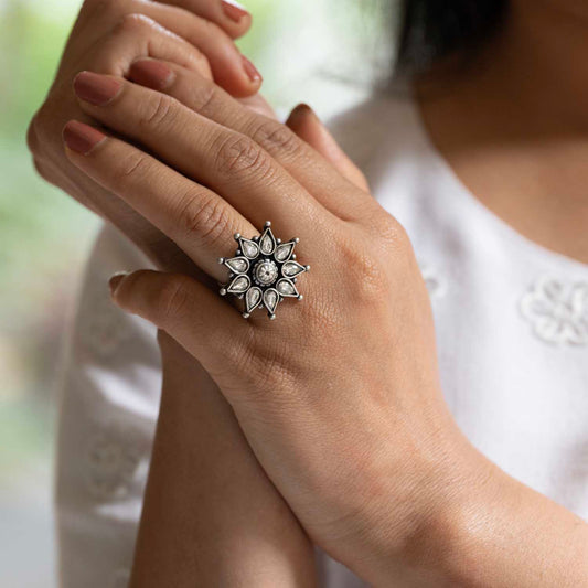 Oxidised Flower Silver Ring