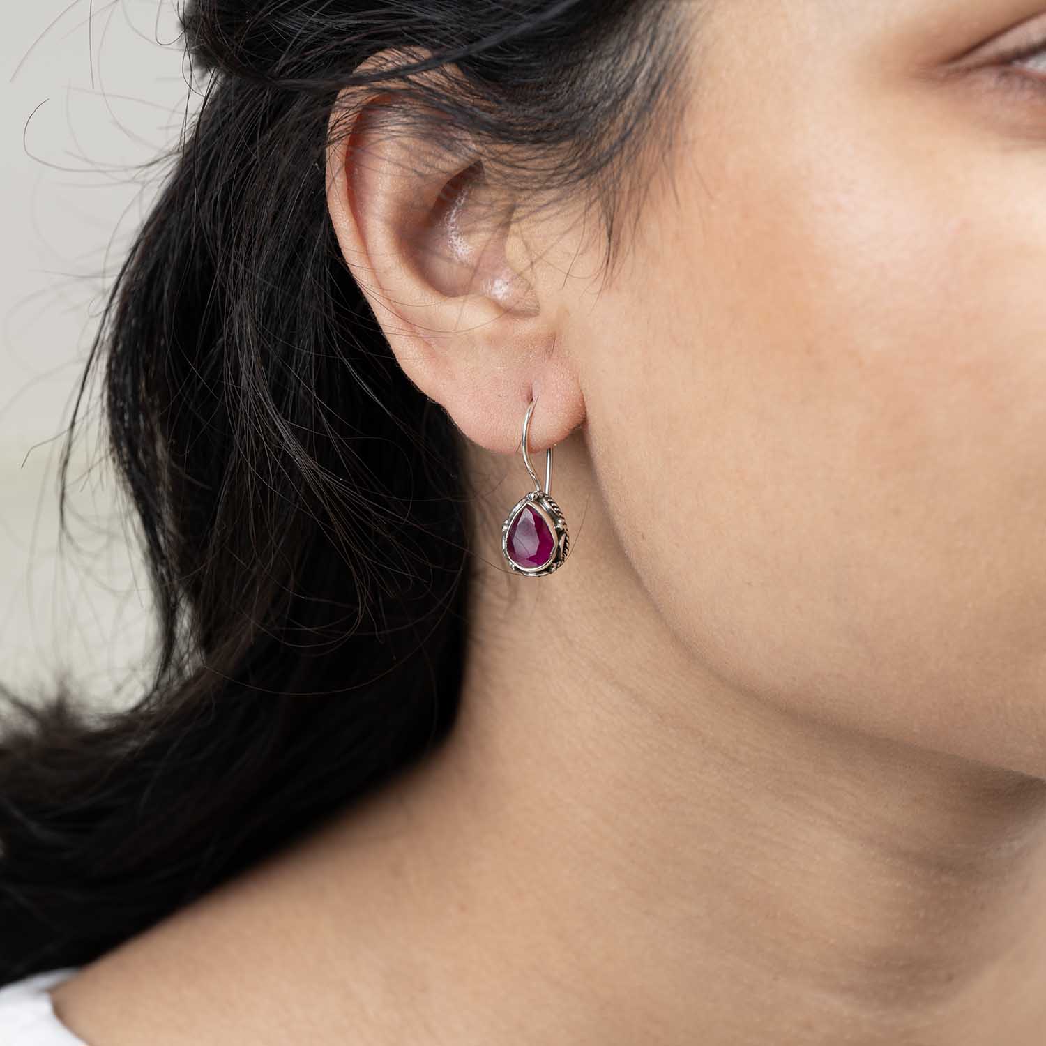 - 92.5 Sterling silver earring with ruby red colour cut stones.