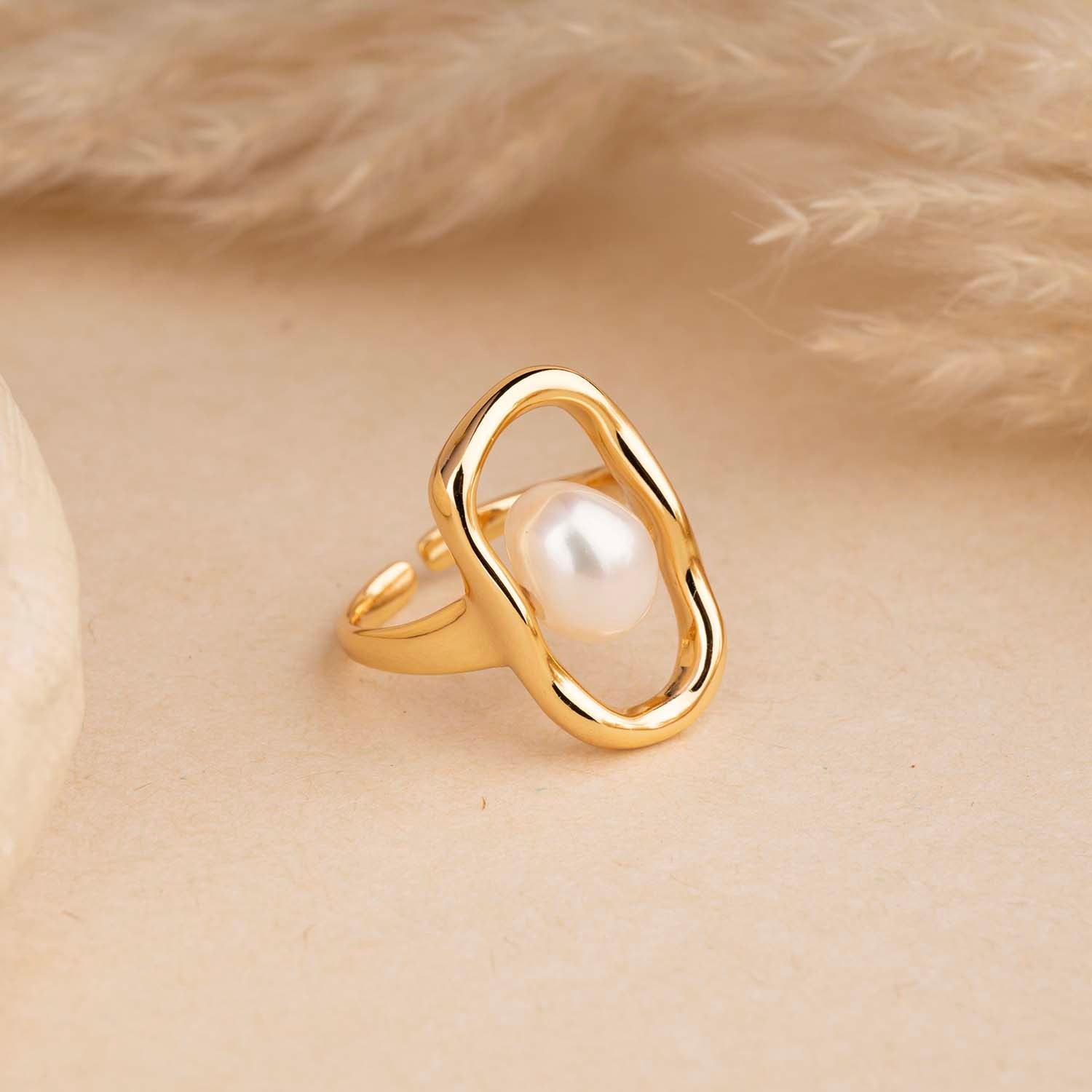 Discover modern artistry with this handcrafted 925 sterling silver ring in a radiant gold finish. Featuring a luminous freshwater pearl set within an organic open-frame design, it’s a striking blend of sophistication and creativity.