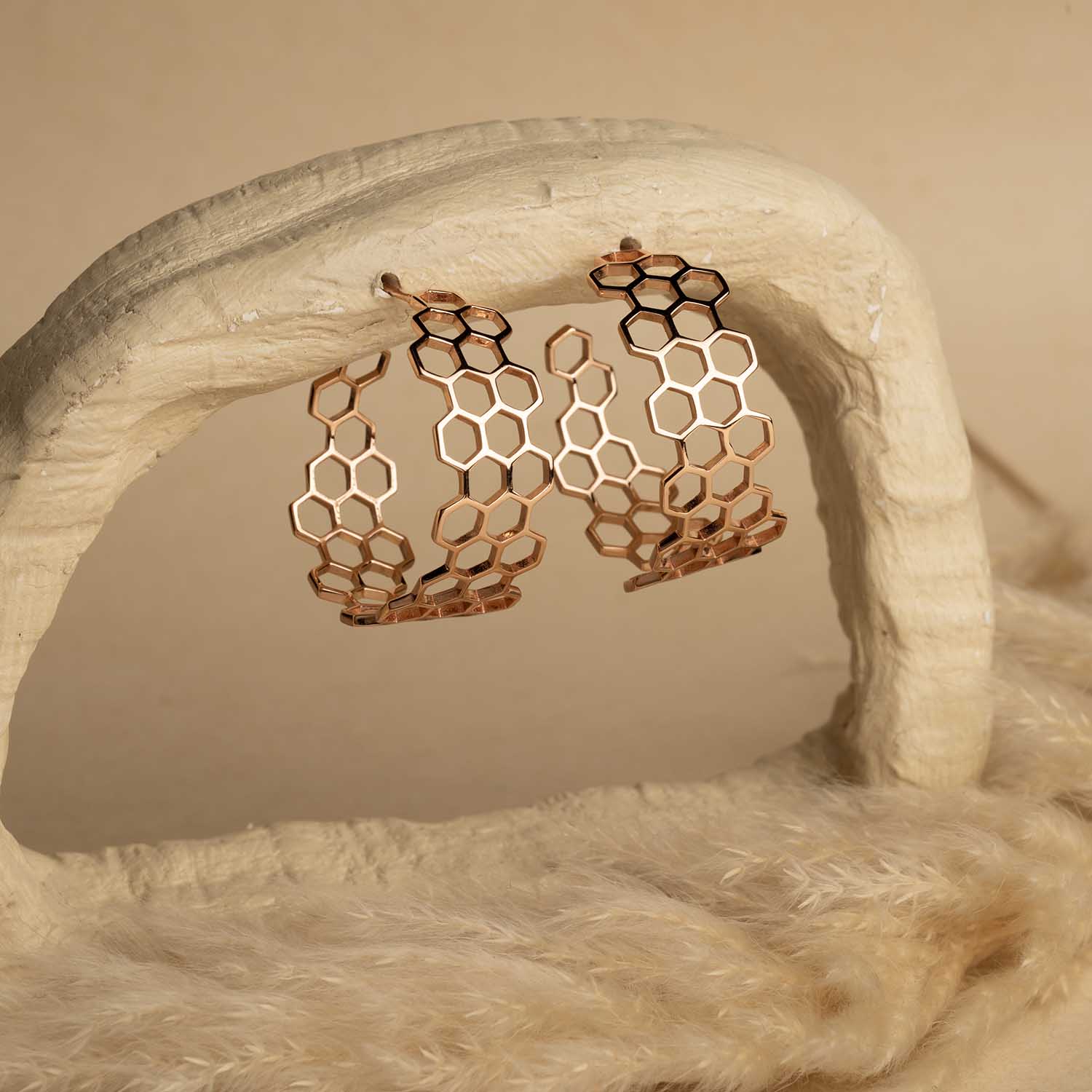 Honeycomb Rose Gold Hoops