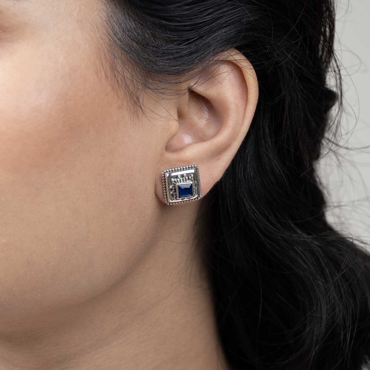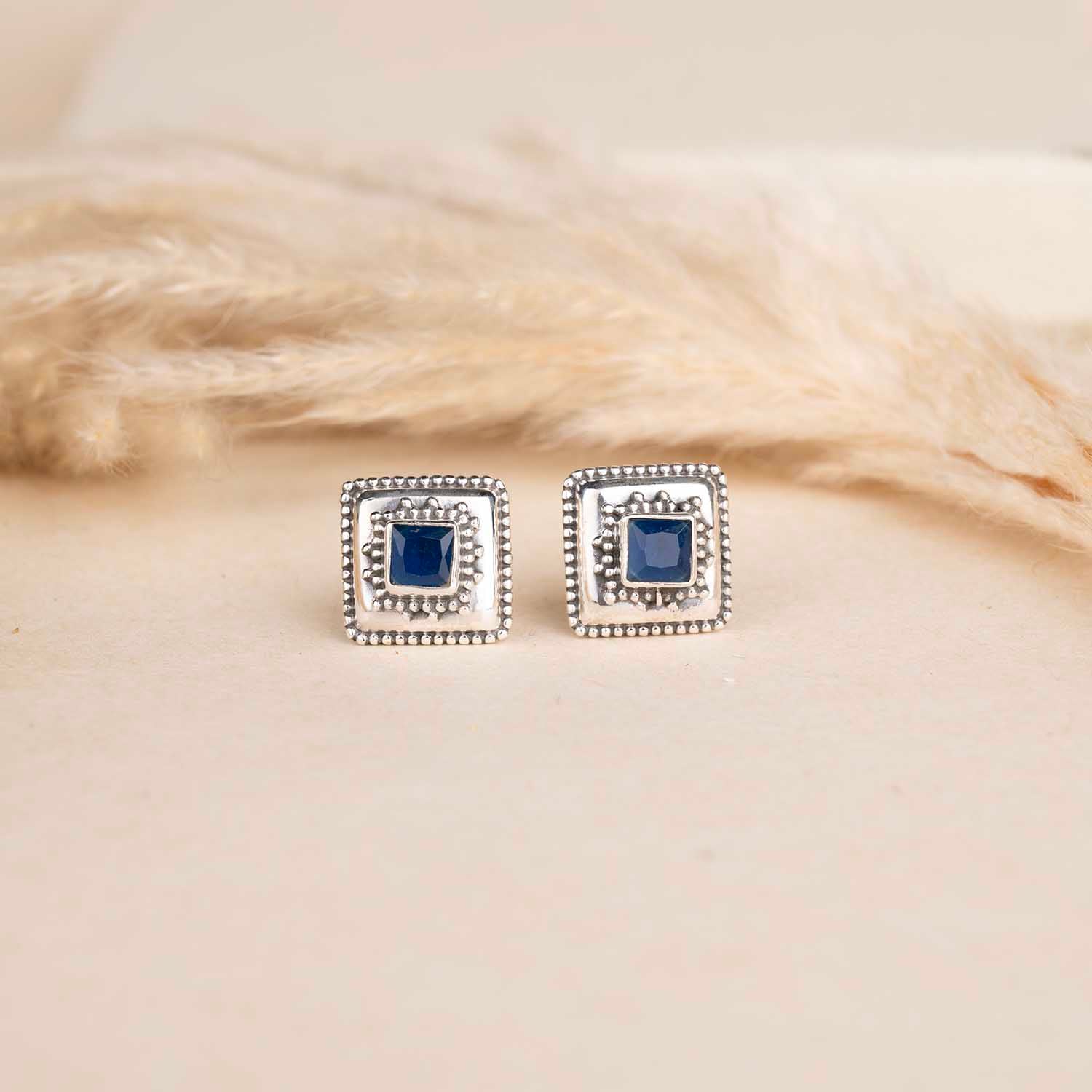 - 92.5 Sterling Silver Earrings with blue colour cut stone