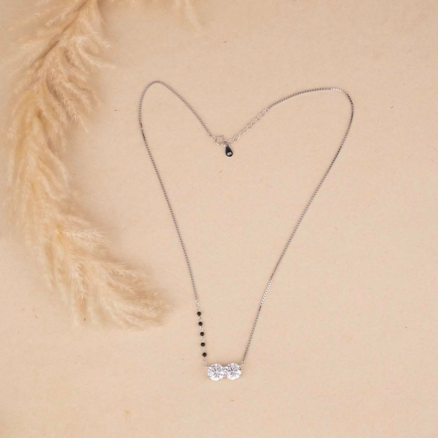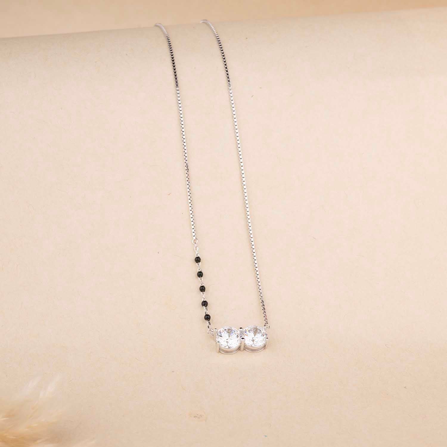 A silver mangalsutra crafted for the new-age bride, balancing tradition and elegance in one timeless piece.