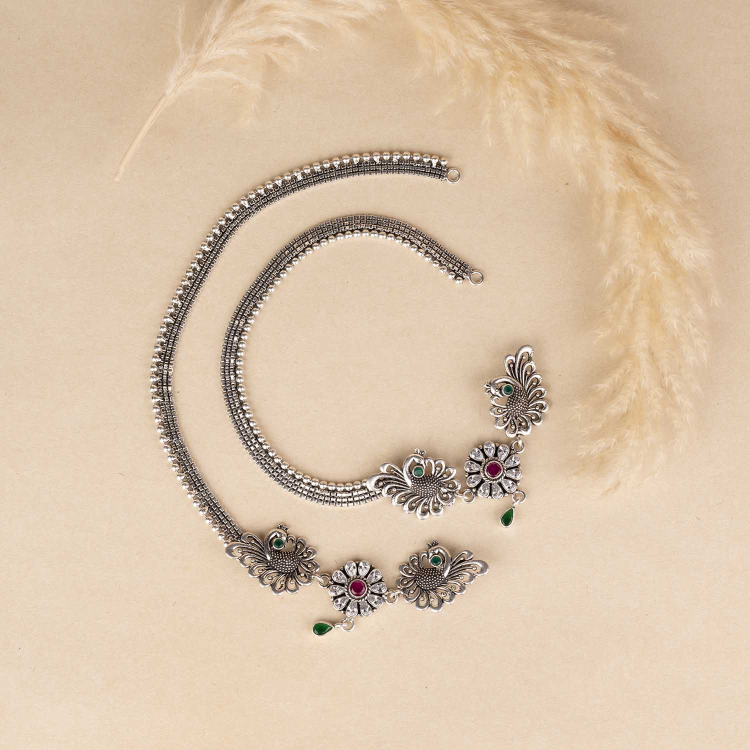 The Peacock Bloom Silver Anklet captures the essence of classic elegance and enduring style. Perfect for adding a touch of traditional charm to any ensemble, it is a symbol of grace and refinement.