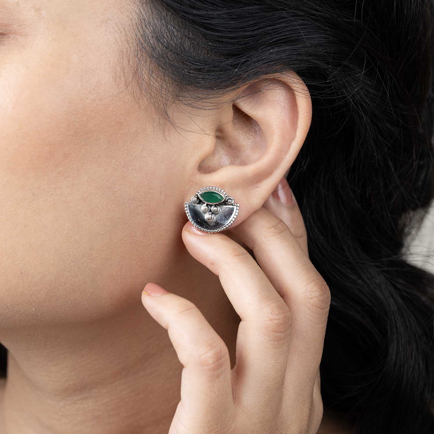 Crafted in pure 92.5 silver, these earrings highlight delicate textures and a rich center stone, bringing grace to your everyday ensemble.