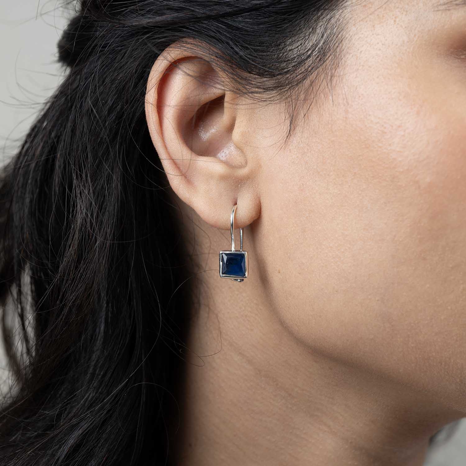 - 92.5 Sterling silver earring with blue colour cut stone.