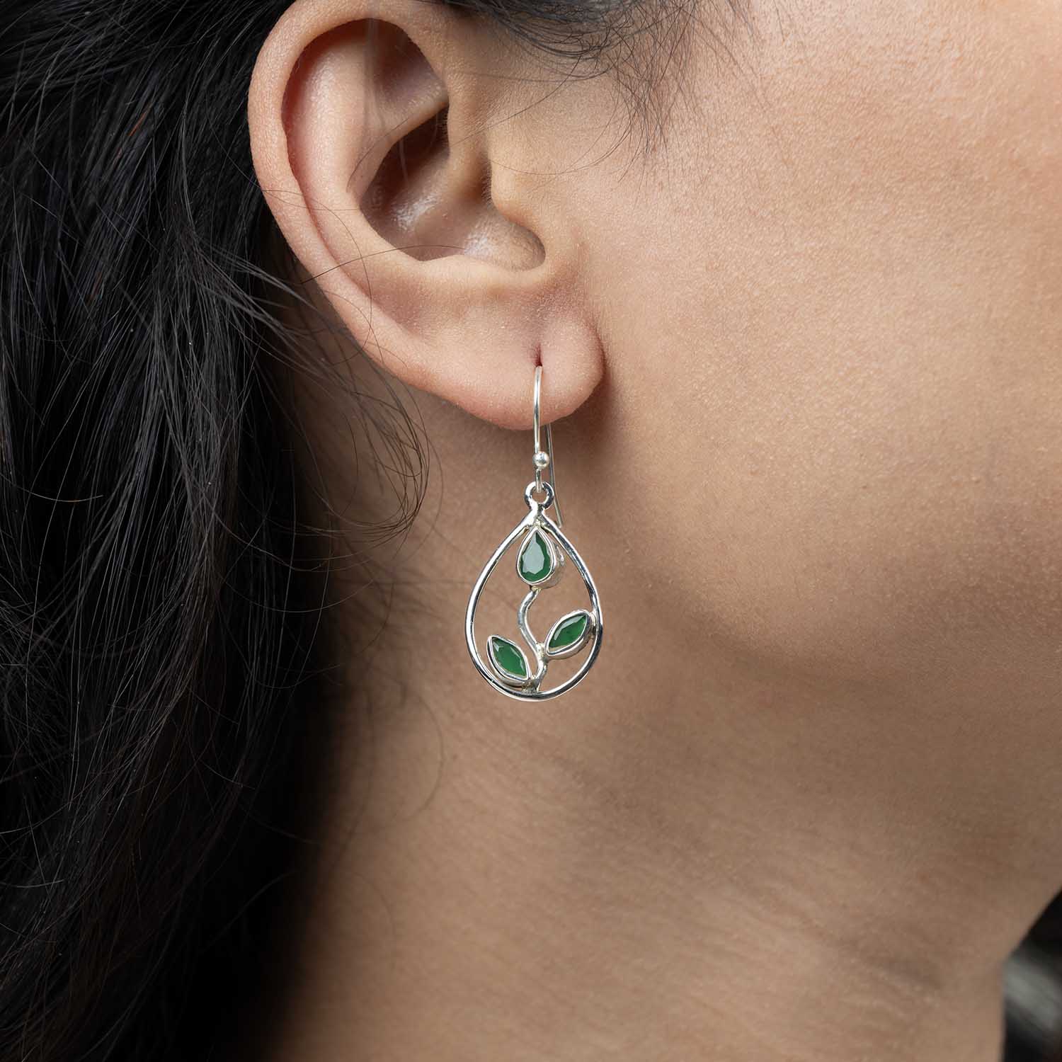 - 92.5 Sterling silver earring with green colour cut stone..