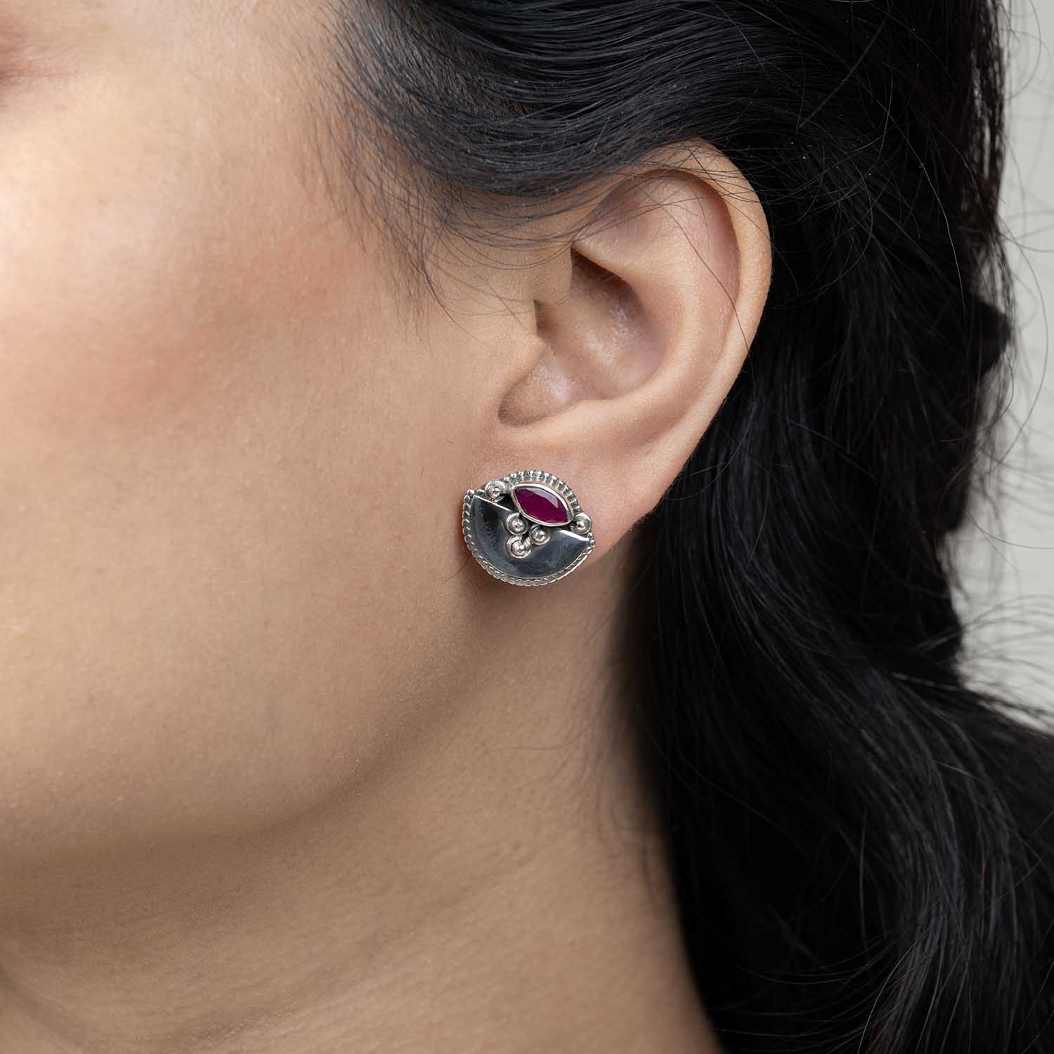Crafted in pure 92.5 silver, these earrings highlight delicate textures and a rich center stone, bringing grace to your everyday ensemble.