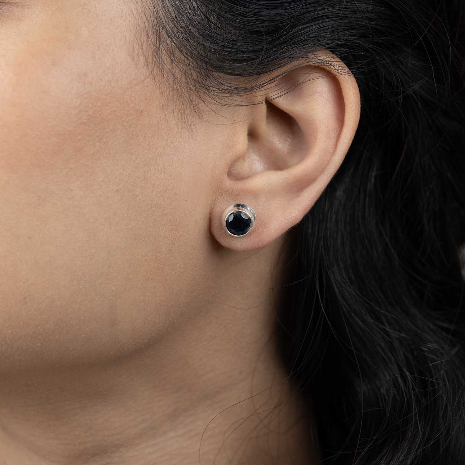 - 92.5 Sterling Silver Earrings with blue colour cut stones.