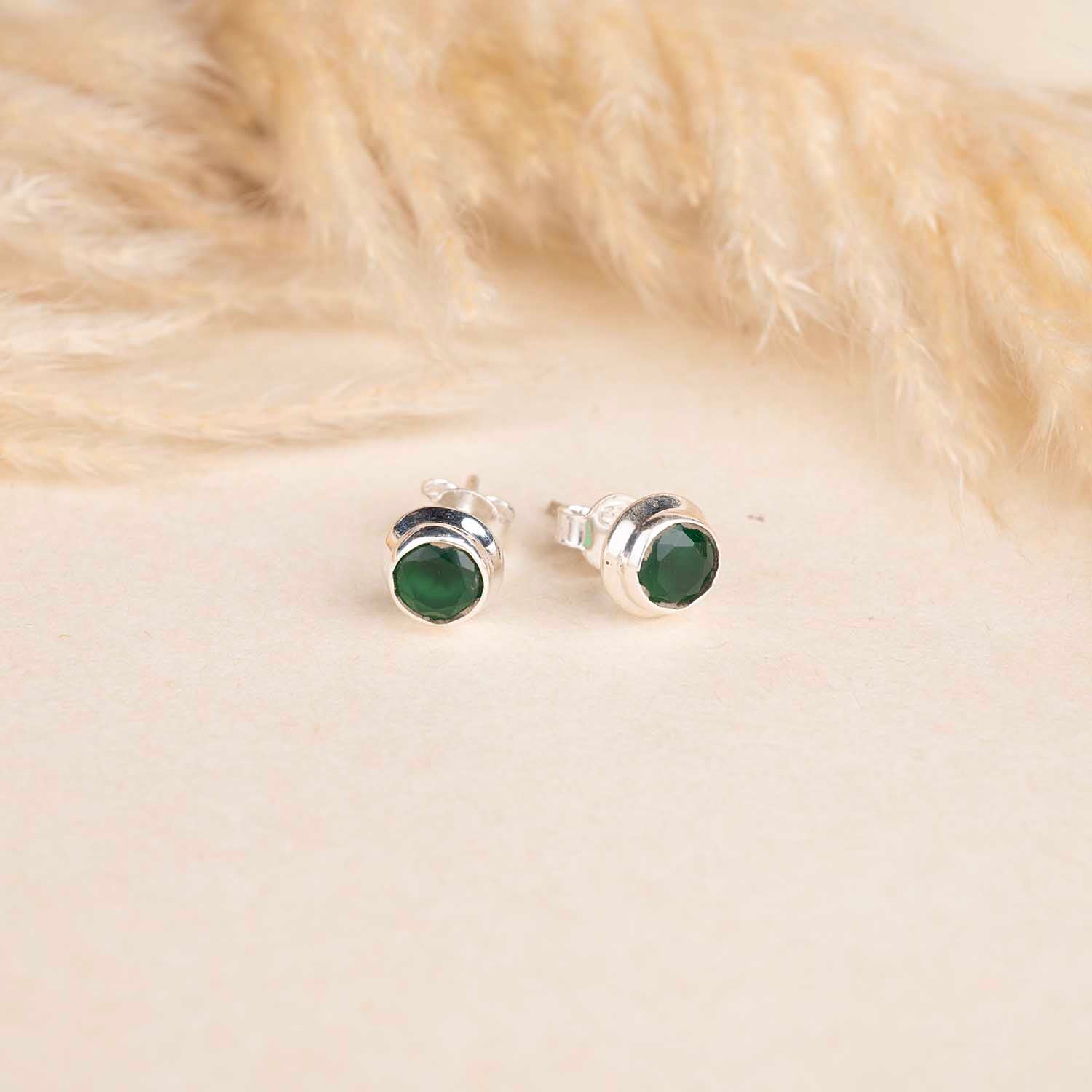 - 92.5 Sterling Silver Earrings with green colour cut stones.