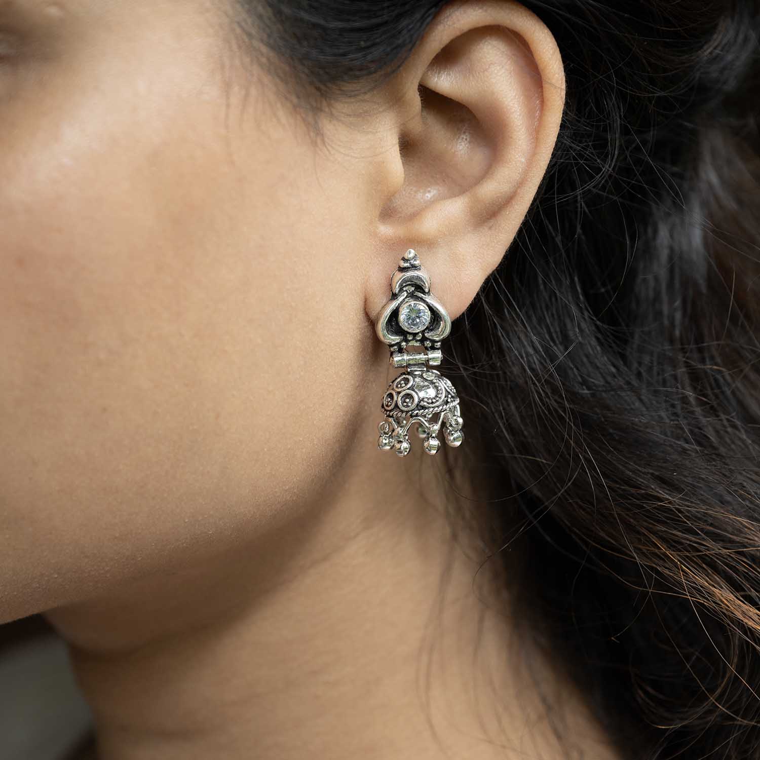 - 92.5 Sterling silver jhumka with oxidised finish.