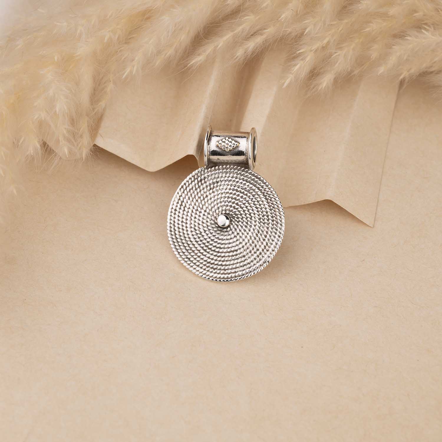 Embrace timeless beauty with this handcrafted oxidised silver floral pendant. Made in 925 sterling silver, its antique detailing and intricate patterns add an old-world charm to your everyday look. Perfect for pairing with both ethnic and fusion outfits.