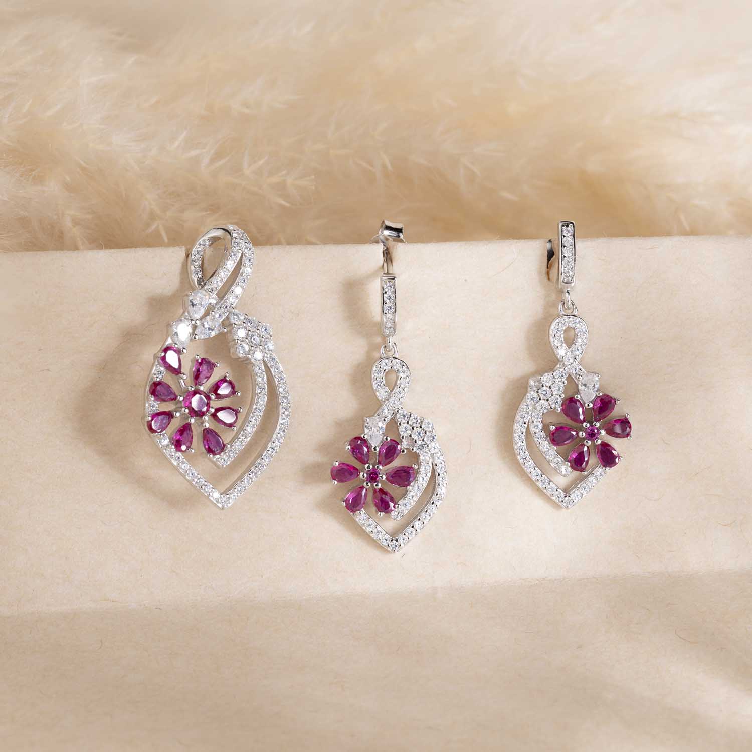 Floral Silver Pendant & Earrings Set
