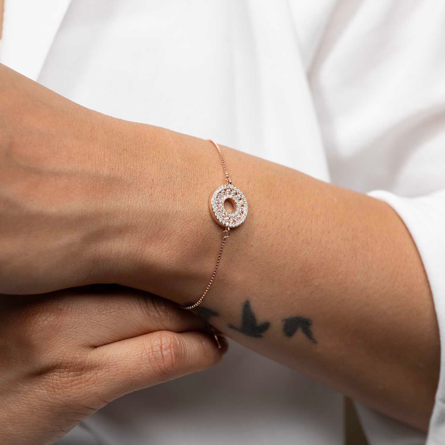 This dainty silver bracelet is finished in rose gold and embellished with glimmering CZ stones, creating a look that's both modern and timeless.